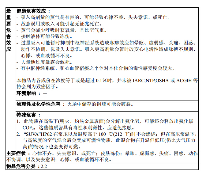 使用R404a制冷劑時材料安全數(shù)據(jù)表(參考)