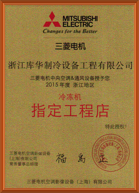 與三菱電機有著同樣的企業(yè)素質(zhì),提供優(yōu)質(zhì)的冷庫工程領(lǐng)域,提高技術(shù)、服務(wù)與創(chuàng)造力,本著嚴謹求實、創(chuàng)新奮進的精神,不斷完善進取,為中國制冷領(lǐng)域提供高性比的制冷工程,我們設(shè)計建造的各類冷庫工程,得到了日本、德國、新西蘭、臺灣、美國等眾多國內(nèi)外客戶高度的認可,并多次將冷庫設(shè)備出口至國外。力求成為制冷行業(yè)庫華制冷優(yōu)秀冷庫安裝工程公司。公司完善的品質(zhì)體系贏得客戶青睞。成為三菱電機浙江省總代理指定工程店。如圖所示: